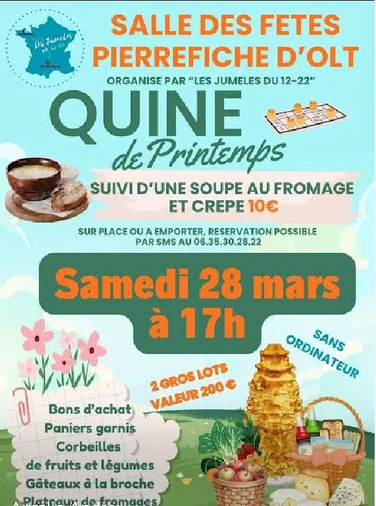 Samedi 28 mars, quine à Pierrefiche à 17h !